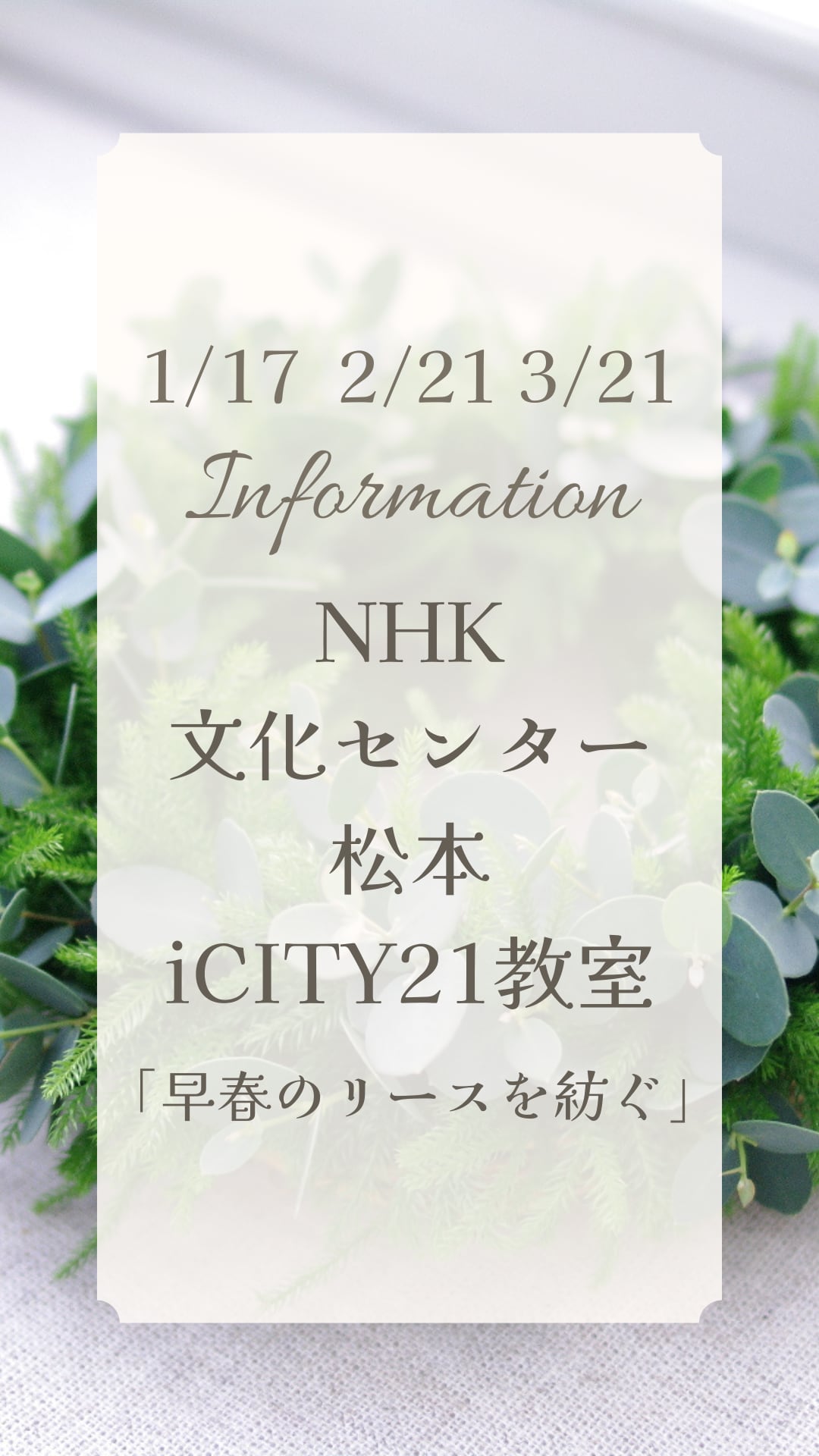 ①NHK文化センター松本iCITY21教室「早春のリースを紡ぐ」2026年1月start 受講生募集中です。 詳細はblogをご覧下さい。